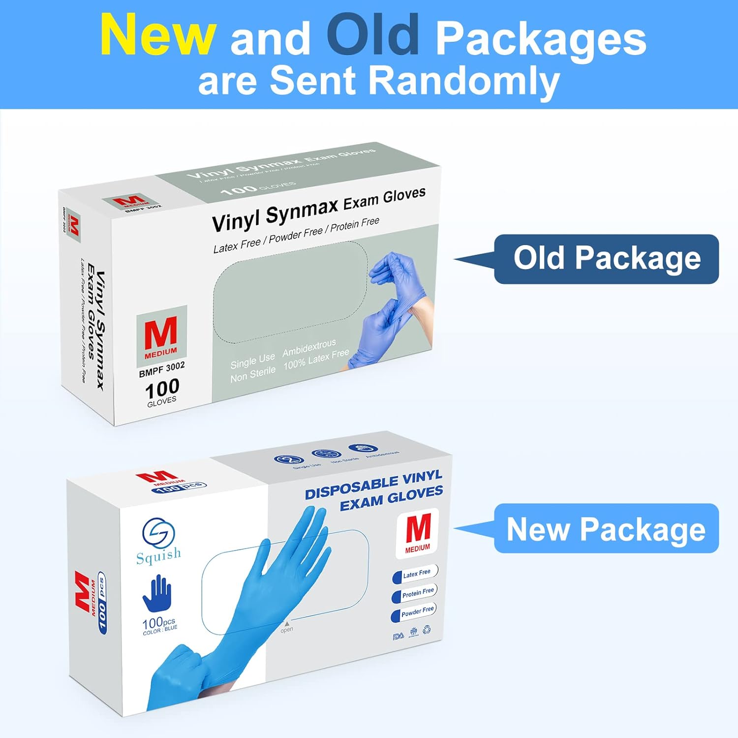 squish Disposable Gloves, Blue 4 mil Vinyl Synmax Blend Exam Gloves Non Sterile, Powder Free, Latex Free – Cleaning Supplies, Kitchen and Food Safe(Pack of 100) (Blue Medium)